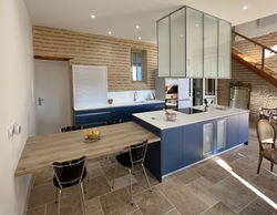 Du bureau d’études à la pose finale, nous vous accompagnons dans votre projet. Un concepteur / designer réalise l’étude et le devis de votre cuisine en vous écoutant et en vous guidant parmi les nombreux choix et les nombreuses finitions. disponibles. Nous concevons sur mesure des hottes verrières, des coins repas bois/métal, des batis déco etc... Nous travaillons de nombreuses matières pour les plans de travail : bois massif, zinc, marbre, granit...